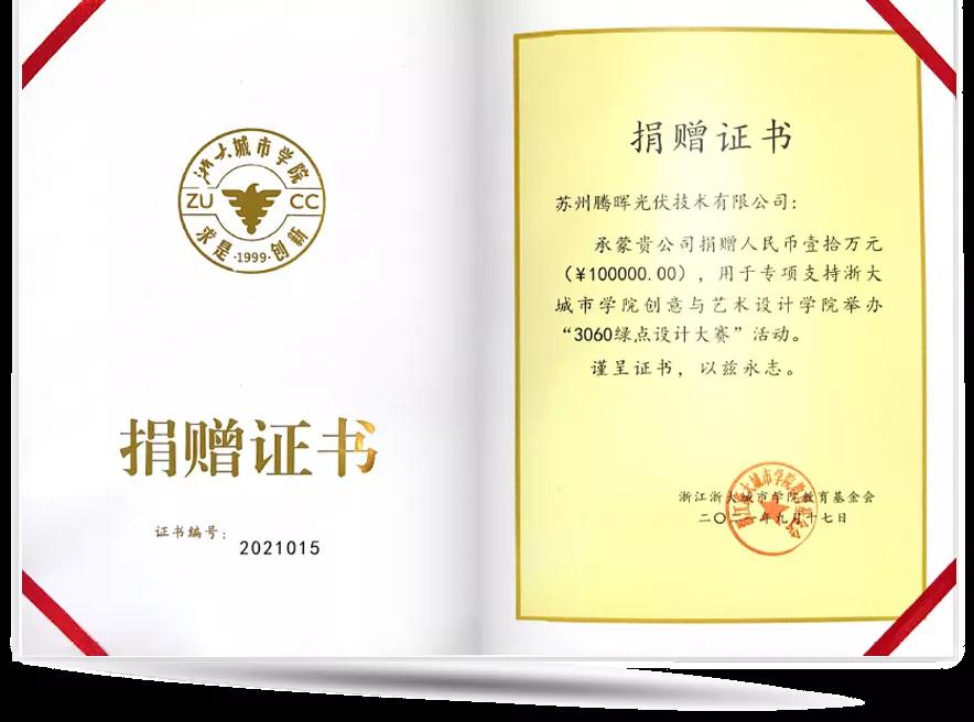 近日,騰暉光伏向浙大城市學(xué)院捐資十萬元,專項支持該校3060綠點設(shè)計創(chuàng)新大賽活動。此外,雙方還將在清潔能源推廣與應(yīng)用、創(chuàng)新人才培養(yǎng)和能源科技成果轉(zhuǎn)化等多個領(lǐng)域深化合作關(guān)系。