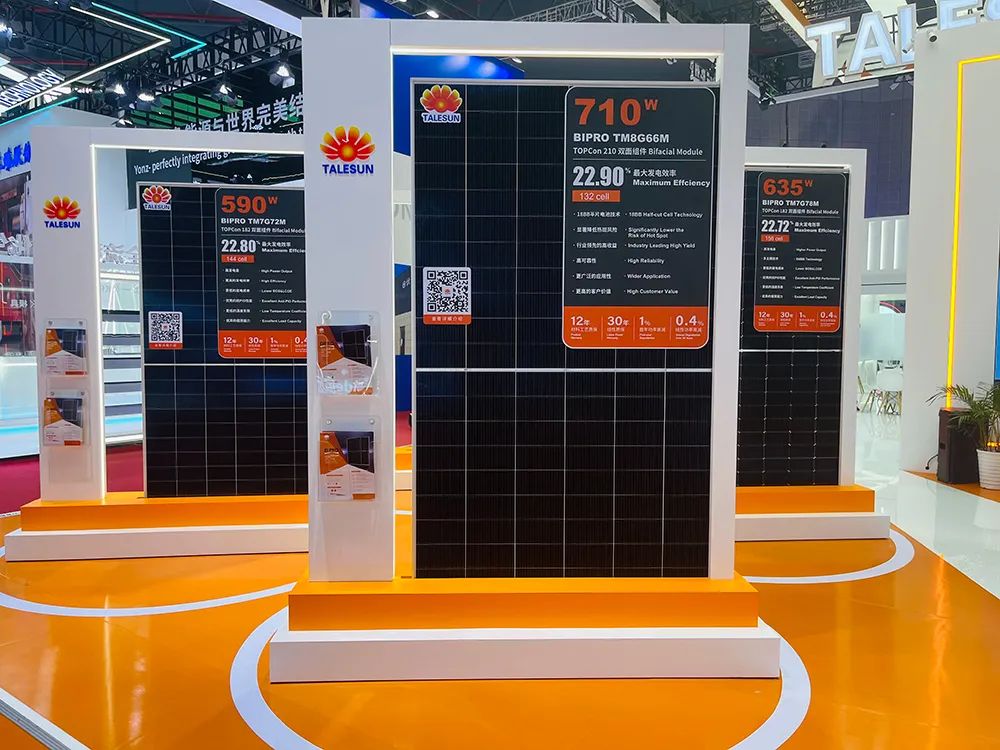 騰暉光伏自成立伊始,一直致力于推動(dòng)光伏技術(shù)的進(jìn)步和應(yīng)用。在本次SNEC展會(huì)上,騰暉光伏帶來(lái)的全系TOPCon組件不僅功率和效率出眾,而且產(chǎn)品線豐富,涵蓋了多種不同功率和尺寸的組件。這些組件不僅適用于大型地面電站,也適用于工商業(yè)和戶用光伏市場(chǎng)。其中,TM8G66M組件最高功率可達(dá)710W,轉(zhuǎn)換效率高達(dá)22.9%,達(dá)到業(yè)內(nèi)一線標(biāo)準(zhǔn)。此外,騰暉光伏還針對(duì)不同的應(yīng)用場(chǎng)景,提供了定制化的解決方案,以滿足客戶的多樣化需求。