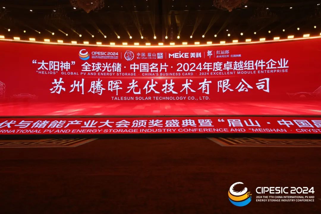 在大會期間,騰暉光伏憑借其出色的表現(xiàn),榮獲了“太陽神”全球光儲·中國名片·2024年度卓越組件企業(yè)獎。這一殊榮不僅彰顯了騰暉光伏在光伏組件領域的領先地位,更體現(xiàn)了其在推動全球能源轉(zhuǎn)型和實現(xiàn)“雙碳”目標中的卓越貢獻。