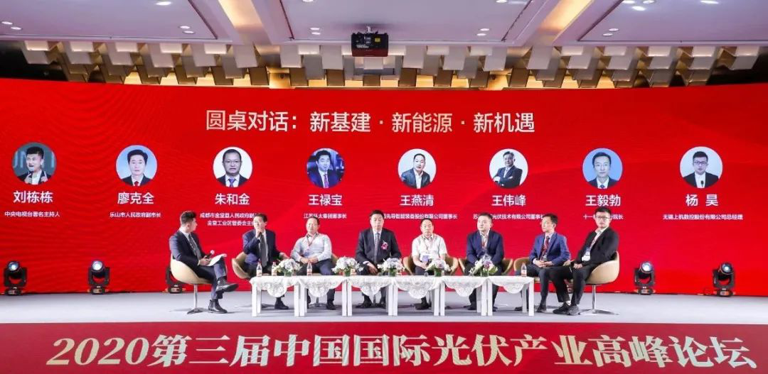 上午,圓桌對話環(huán)節(jié)騰暉光伏董事長王偉峰與樂山市人民政府副市長廖克全,成都市金堂縣人民政府副縣長,金堂工業(yè)區(qū)管委會主任朱合金,江蘇環(huán)太集團(tuán)董事長王祿寶,無錫先導(dǎo)智能裝備股份有限公司董事長王燕清,十一科技執(zhí)行院長王毅勃,無錫上機數(shù)控股份有限公司總經(jīng)理楊昊等行業(yè)領(lǐng)袖和企業(yè)高層共聚一堂,圍繞“新基建.新能源.新機遇”主題,探討中國光伏能源行業(yè)未來新機遇。