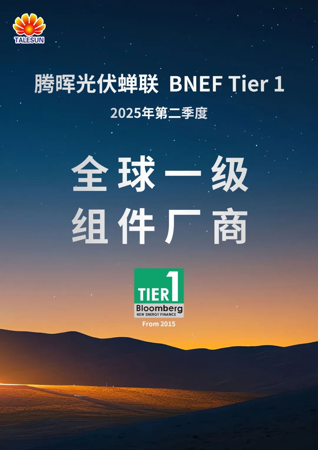 2025年6月2日,全球權(quán)威研究機(jī)構(gòu)彭博新能源財(cái)經(jīng)(BloombergNEF,簡(jiǎn)稱(chēng)BNEF)正式公布2025年第二季度Tier 1全球一級(jí)光伏組件制造商榜單。在光伏行業(yè)競(jìng)爭(zhēng)白熱化、新規(guī)嚴(yán)苛施壓的大背景下,騰暉光伏憑借卓越的技術(shù)實(shí)力、穩(wěn)健的財(cái)務(wù)表現(xiàn)以及前瞻性的全球化市場(chǎng)布局,再度榮登該榜單,成為新規(guī)實(shí)施后為數(shù)不多持續(xù)入圍的光伏企業(yè)之一。此次蟬聯(lián),不僅是對(duì)騰暉光伏行業(yè)領(lǐng)先地位的有力印證,更彰顯了其在高門(mén)檻、嚴(yán)標(biāo)準(zhǔn)下的非凡綜合競(jìng)爭(zhēng)力。