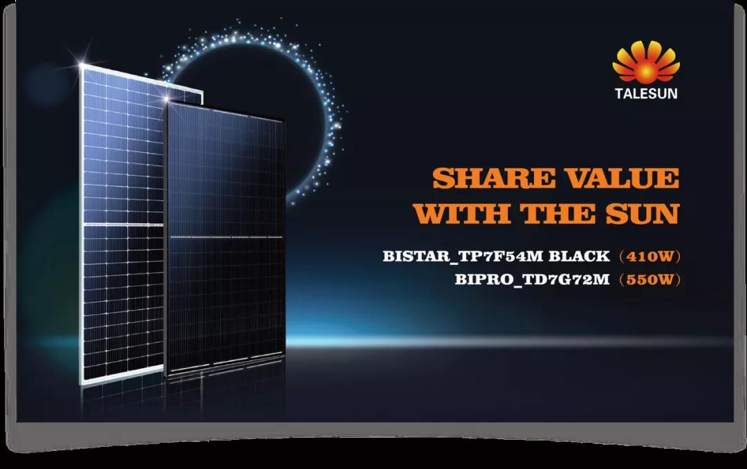 本屆展會上,騰暉光伏針對當?shù)厥袌鲂枨笳钩鰞煽罟夥M件產(chǎn)品,包括410W 的BISTAR系列黑組件和550W的BIPRO系列雙玻組件。兩款產(chǎn)品都采用了182mm大尺寸半片電池片和多主柵設(shè)計,有效提升轉(zhuǎn)換效率和降低能源輸出損耗,適用于多種應用場景。